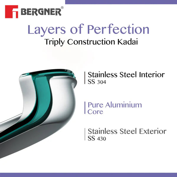 BE Essentials Tri Ply Stainless Steel Kadai with Steamer